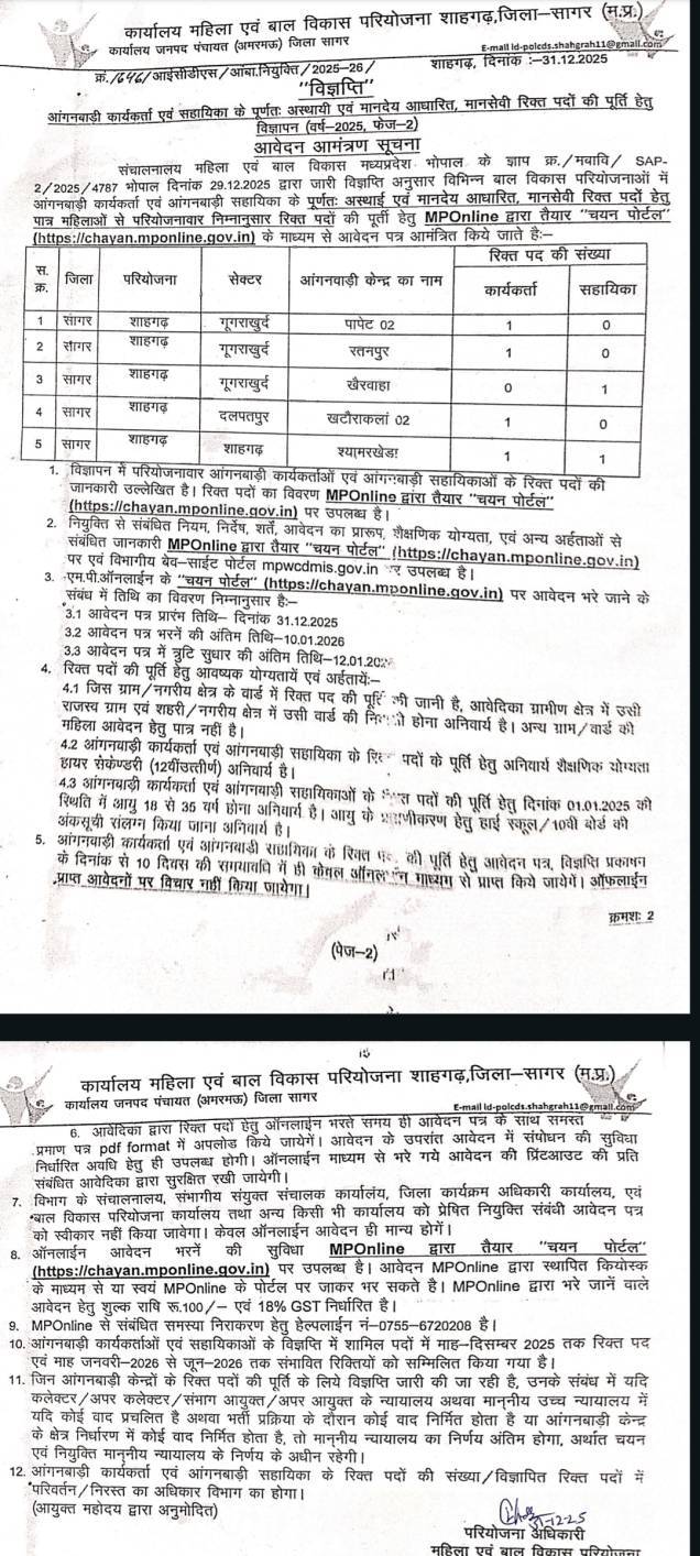 ➡️ परीक्षा केंद्र पर परीक्षार्थियों को सहानुभूति पूर्वक तनाव मुक्त वातावरण दें, ➡️ निर्वाचन की भांति परीक्षा को पूरी पारदर्शिता के साथ संपन्न कराए, ➡️ परीक्षा केंद्र पर मीडिया पूर्णतः प्रतिबंधित रहेगी, ➡️ सोशल मीडिया पर चलने वाली भ्रामक खबरों से बचें, ➡️ परीक्षा में संलग्न अधिकारी कर्मचारी निष्पक्ष निर्भीक जवाबदेही से परीक्षा कराए, सुरक्षा का कार्य जिला एवं पुलिस प्रशासन करेगा, ➡️माध्यमिक शिक्षा मंडल के निर्देशों का अक्षरशः पालन करें - जिला पंचायत सीईओ श्री विवेक के वी, ➡️ परीक्षा के दौरान तनाव कैसे दूर करें श्रृंखला , ➡️ विद्यार्थी कुछ महत्वपूर्ण बिंदुओं का  ध्यान रखकर हिंदी विषय में पूर्ण अंक प्राप्त कर सकते हैं, ➡️ कोई भी बच्चा या गर्भवती महिला पंजीयन से न छूटे, एनआरसी में रहे शत-प्रतिशत उपस्थिति कलेक्टर ….....आईएएस अधिकारी संदीप जी.आर. को मध्य प्रदेश शासन में अपर सचिव के पद पर पदोन्नत किया....... ➡️ लाडली लक्ष्मी से पोषण वाटिका तक... कलेक्टर ने परखी योजनाओं की जमीनी हकीकत, दिए विशेष अभियान के निर्देश। ➡️ सागर कलेक्टर का बड़ा निर्णय ➡️ स्कूल-कॉलेजों में विशेष शिविर लगाकर बनाए जाएंगे जाति प्रमाण पत्र....... भावांतर राशि नही मिली, किसानों में आक्रोश।  किसानों का सात दिन बाद होगा आमरण अनशन। कांग्रेस के पूर्व विधायक तरवर सिंह के साथ दो हजार किसानों ने दिया ज्ञापन ।  .......श्रमजीवी पत्रकार संघ सागर जिला अध्यक्ष बने श्री देवेंद्र कश्यप को शाहगढ़ ब्लॉक अध्यक्ष प्रकाश अदावन ने दी शुभकामनाएं । शाहगढ़ ब्लॉक ईकाई की ओर से बहुत-बहुत बधाई हो।..... ➡️ कलेक्टर श्री संदीप जी आर ने सभी नागरिकों को नववर्ष की हार्दिक बधाई एवं शुभकामनाएं दी। .....सागर जिला कलेक्टर संदीप जी आर की नई पहल..... ➡️ आपकी एक गलती परिवार से दूर कर सकती है, यातायात के नियमों का पालन कर वाहन चलाएं -- कलेक्टर संदीप जी आर ➡️ चालान से ज्यादा अपनी जान को सुरक्षित रखें, सड़क सुरक्षा में अपनी सुरक्षा है --पुलिस अधीक्षक श्री शाहवाल .......शाहगढ़ परियोजना के आंगनबाड़ी कार्यकर्ता 4 व सहायिका 2 के पदों पर भर्ती....... .......भावांतर राशि दिलाने और खाद गोदाम प्रभारी को हटाने सड़कों पर उतरे किसान। भारतीय किसान संघ ने रैली निकालकर तहसीलदार को दिया ज्ञापन ..….. ......…. शाहगढ़ में हिंदू सम्मेलन 24 तारीख को श्री मजघटिया धाम मंदिर प्रांगण, मदनतला रोड में होगा आयोजन...… खुरई वालों ने फूलों से होली दीवाली मना दी, स्वागत देख कर दंग रह गया हूं - मुख्यमंत्री डॉ. मोहन यादव ➡️ स्वागत से अभिभूत मुख्यमंत्री डा मोहन यादव ने खुरई विधानसभा क्षेत्र को लगभग 1000 करोड़ से अधिक की सौगातें दीं ➡️ खुरई को आईटीआई, नेचुरल एथलेटिक्स ट्रैक, कृषि महाविद्यालय भवन व छात्रावास, रजवांस में 132 केव