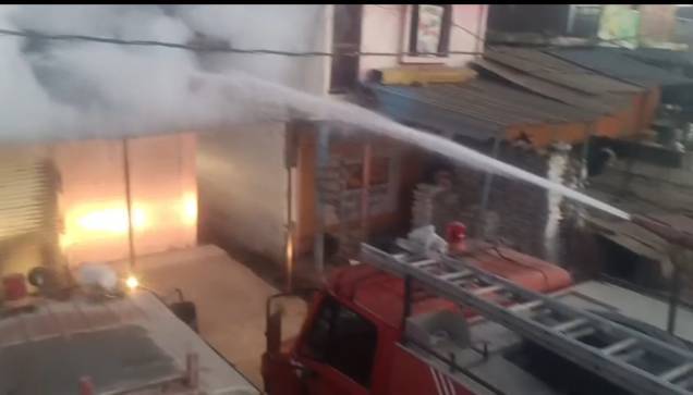 शाहगढ़ में मेडिकल स्टोर में आग लगी।  शॉर्ट सर्किट से दवाइयां जलक...